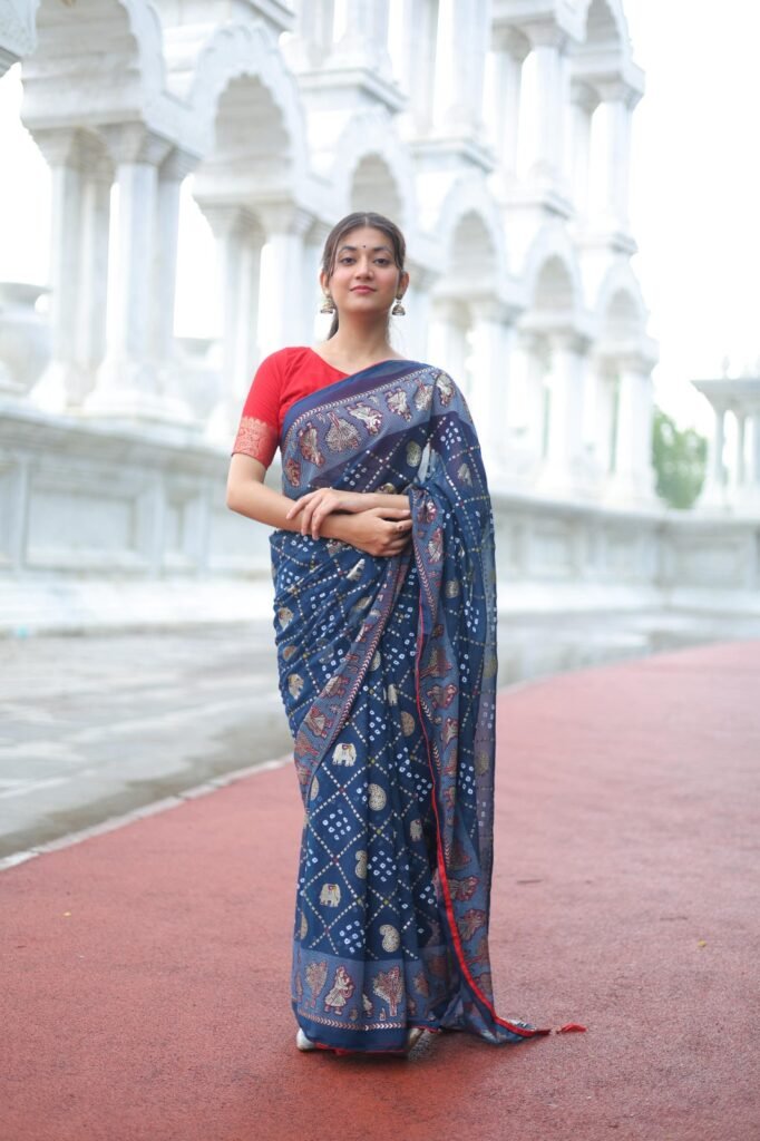 Deeply connected to the vibrant culture of Rajasthan, our crafts are born from the heart of its rich textile legacy. We celebrate the bold geometry of Bagru, the floral charm of Sanganeri, the mystical patterns of Ajrakh, the flowing artistry of Batik, and the vibrant spirit of Bandhej. Each design carries the imprint of generations-old craftsmanship, reimagined for the modern woman.